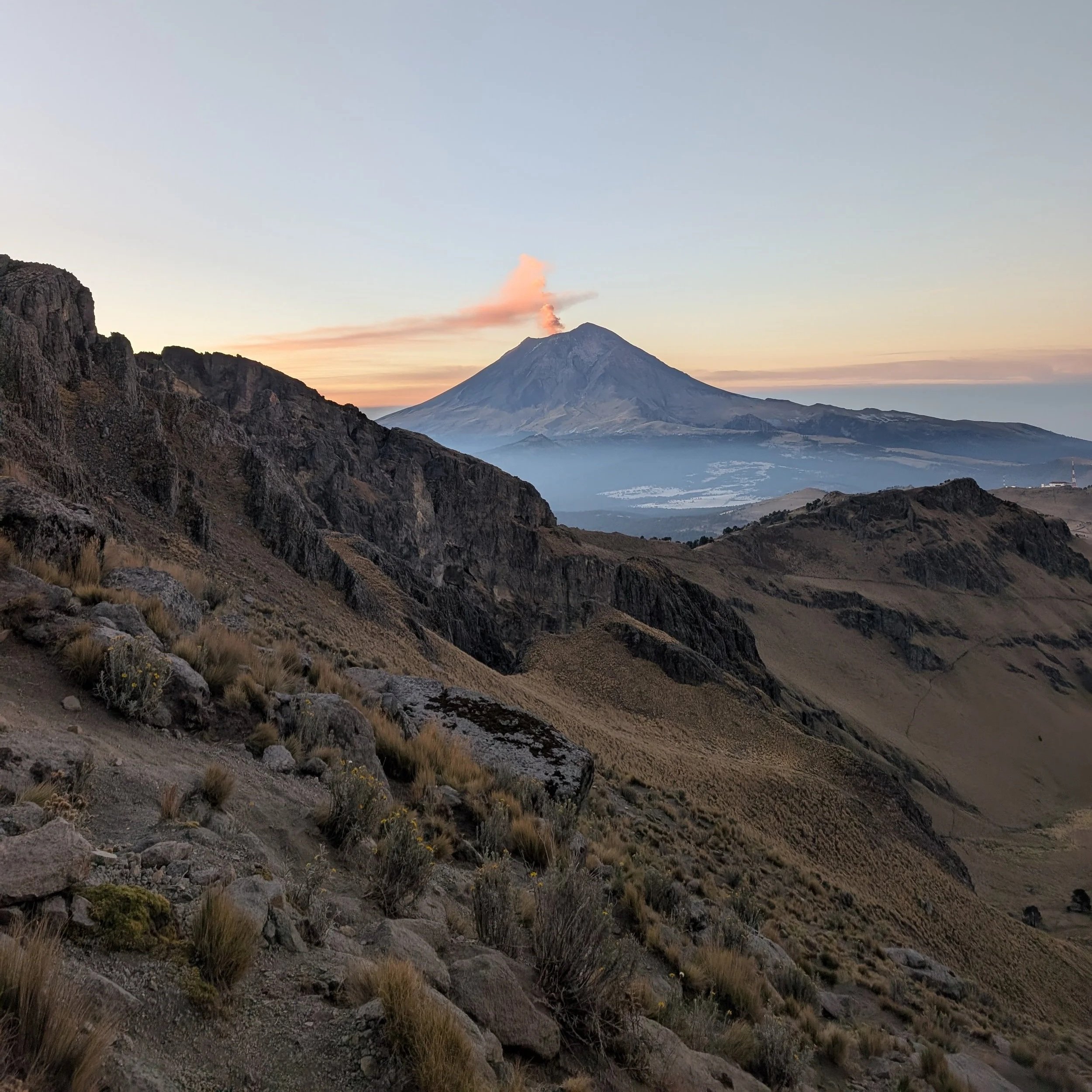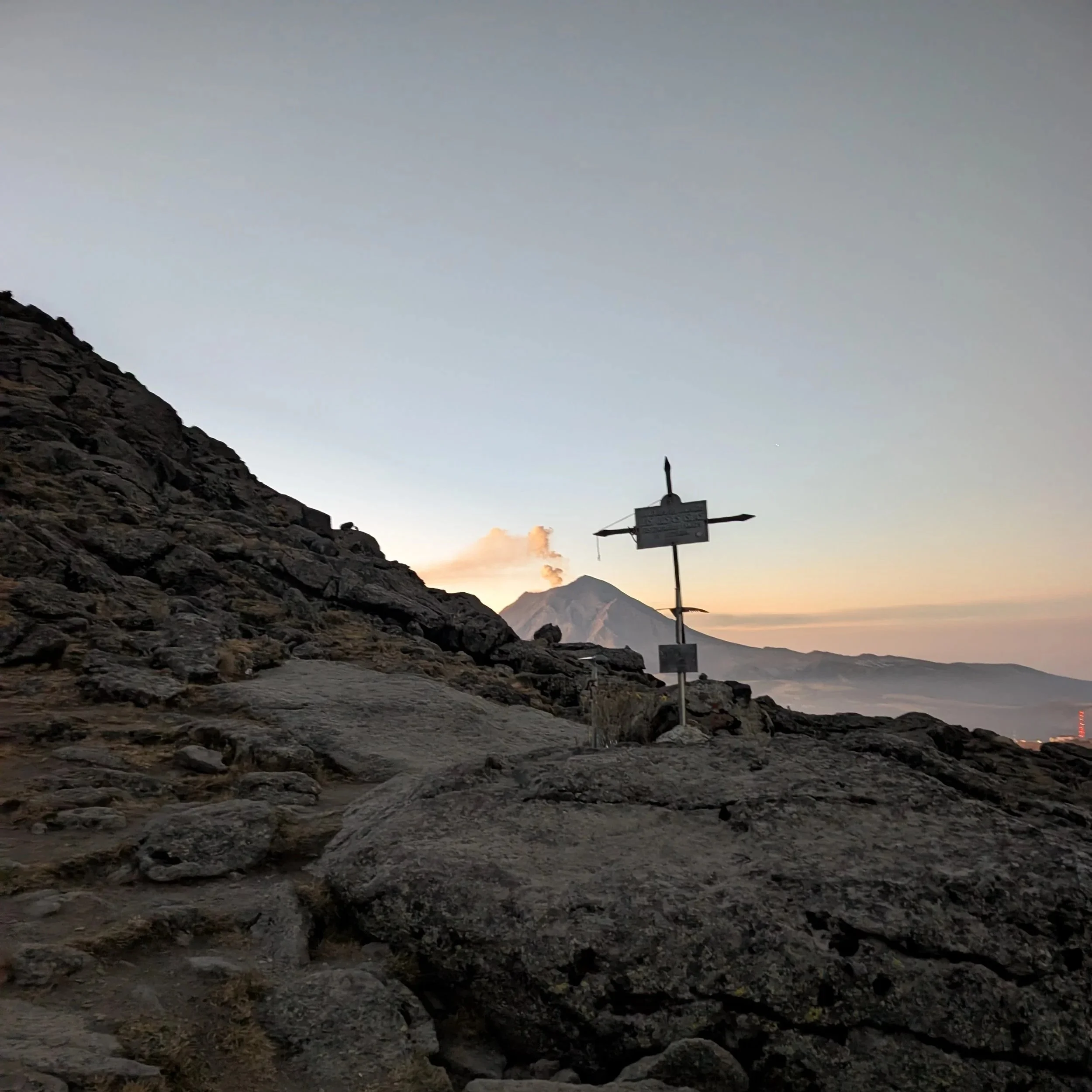 The volcano had been sending up a plume of smoke behind us throughout the night. But the first time we noticed it was two hours into a nine hour climb.