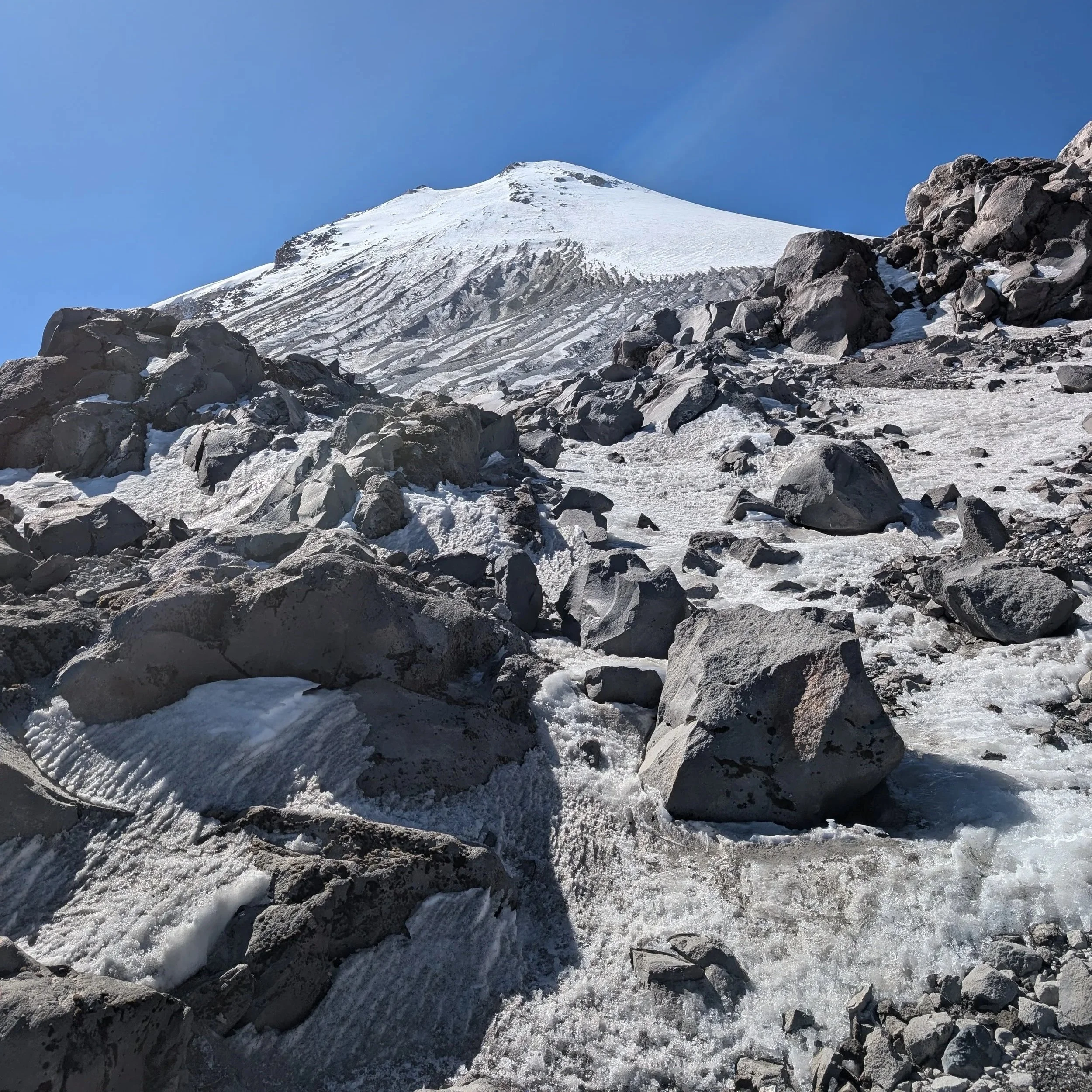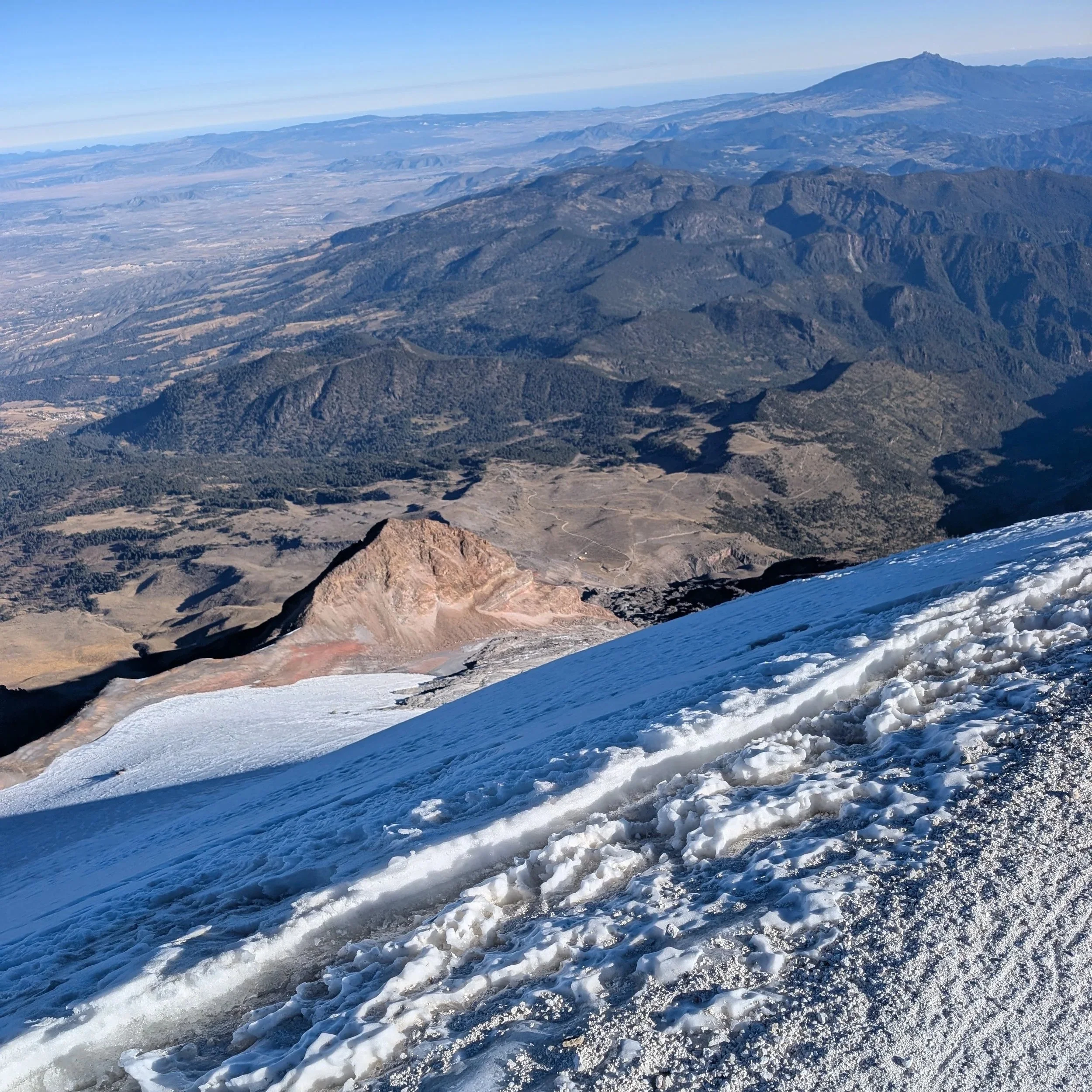 Their frequency increased at every switchback on the 1,700 ft glacier topping Pico de Orizaba. Leaning on my poles, trying not to throw up, breathing hard at 18,000 feet. Swinging my leg forward, planting the handle of my ice axe in the snow. We stopped often so in order to move again - Lista, I would say. Ready.