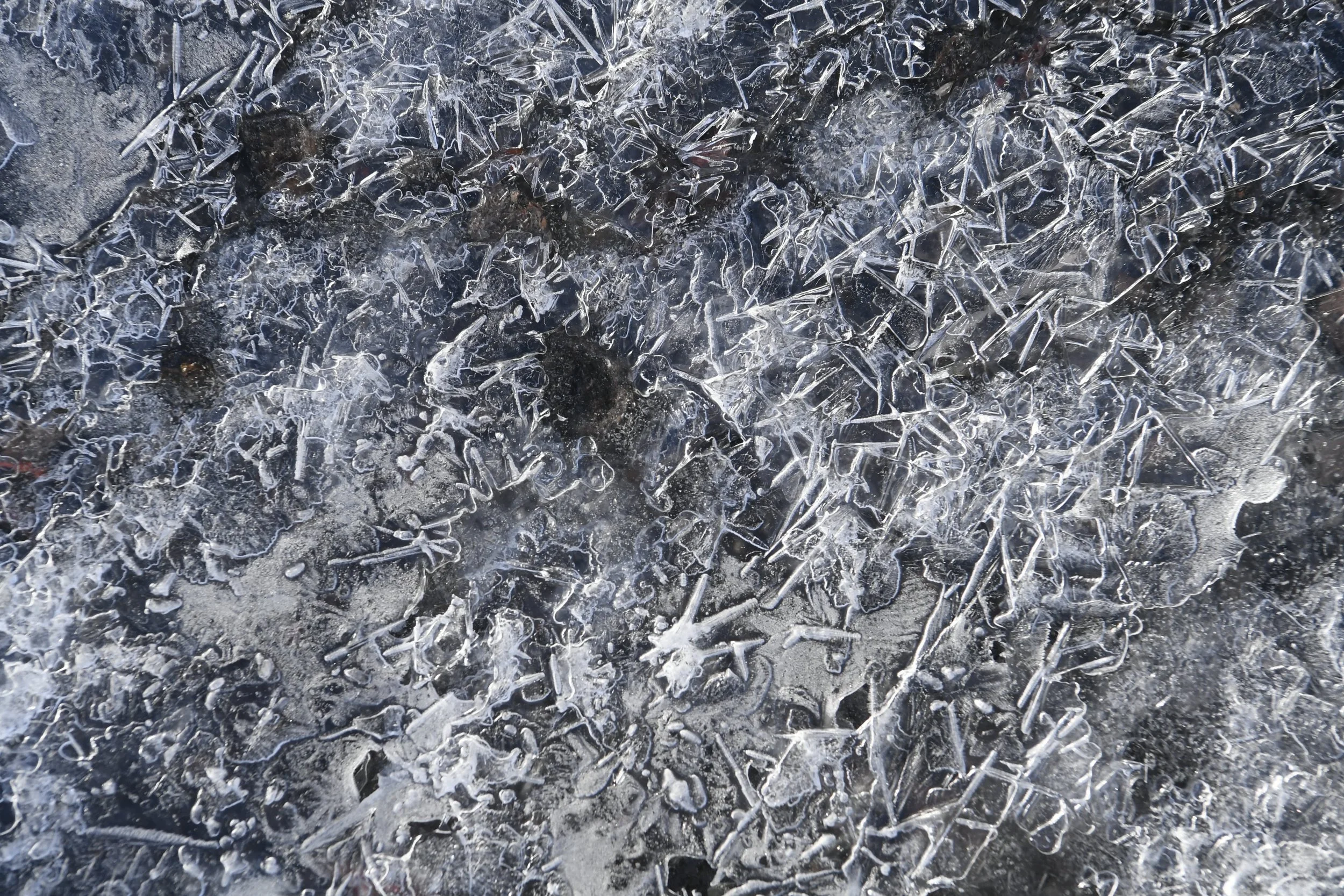 When I parked my car in the morning dark, raindrops encasing bits of ice prickled my windshield. All three states of matter existed in those drops: a triumvirate of ice, snow, and rain.